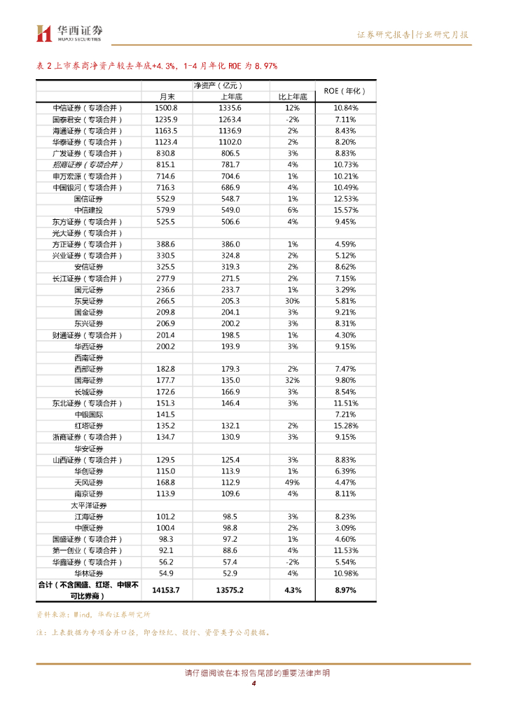 华西证券:证券行业月报:券商4月业绩大涨,1-4月累计净利润+12%,行业景气度继续回升.pdf