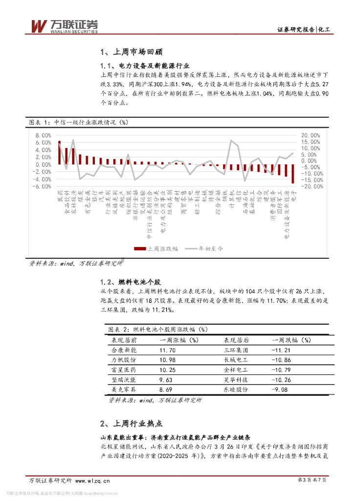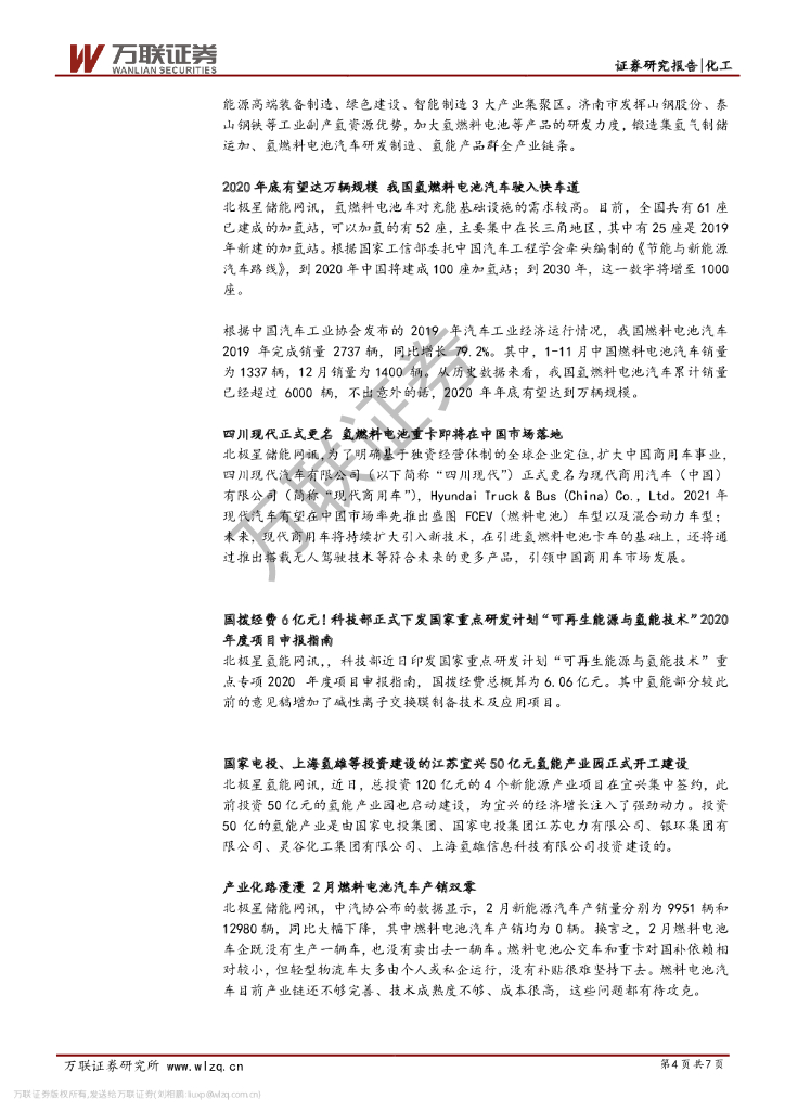 万联证券:燃料电池行业周观点:甲醇电池发展提速,短期建议关注加氢站建设.pdf