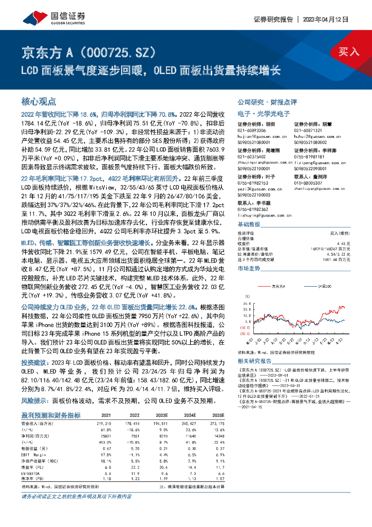 国信证券:京东方A(000725)-LCD面板景气度逐步回暖,OLED面板出货量持续增长.pdf