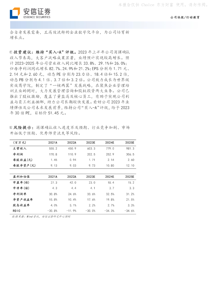安信证券:行动教育(605098)-疫后主业恢复强劲,大客户战略成效显著.pdf