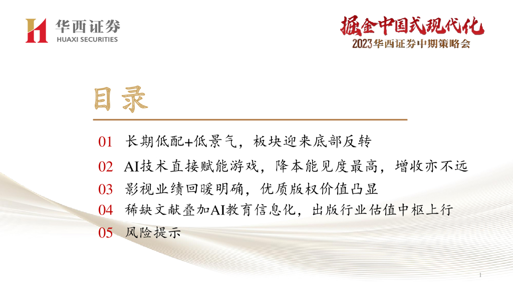 华西证券:传媒行业2023华西证券中期策略会:把握AI增收主线,重视业绩反转节点.pdf