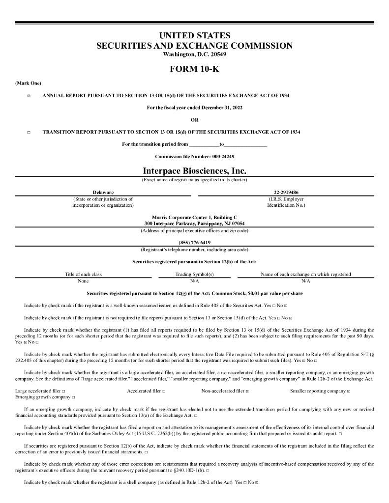 Interpace Biosciences, Inc.(IDXG)2022财年年度报告(英文版).pdf