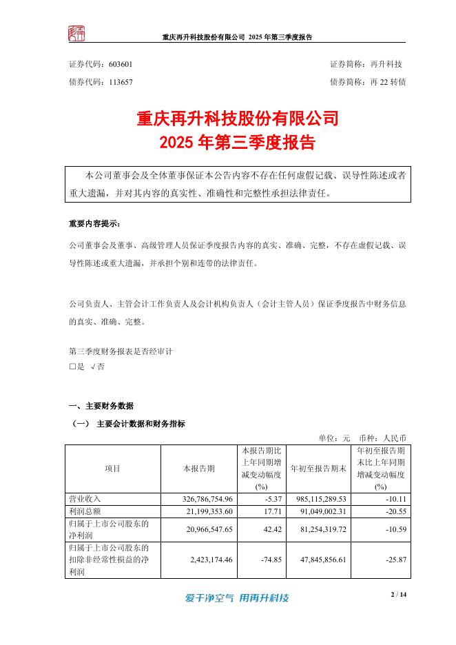 113657-再升科技:再升科技2025年第三季度报告.pdf