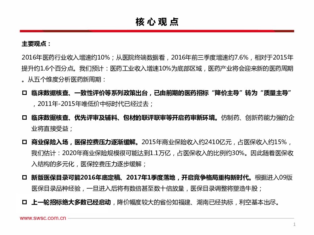 西南证券:2017年1月医药投资策略:医药新周期,“轻医重药”新思路.pdf
