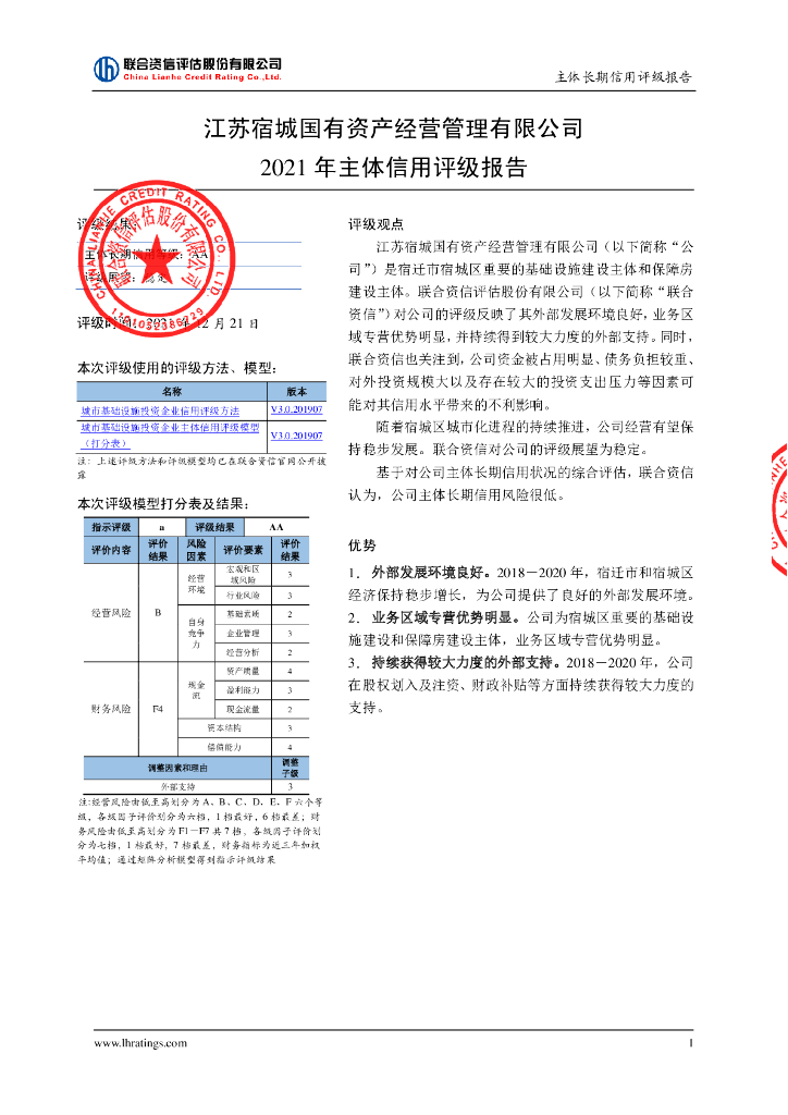 联合资信:江苏宿城国有资产经营管理有限公司主体信用评级报告.pdf