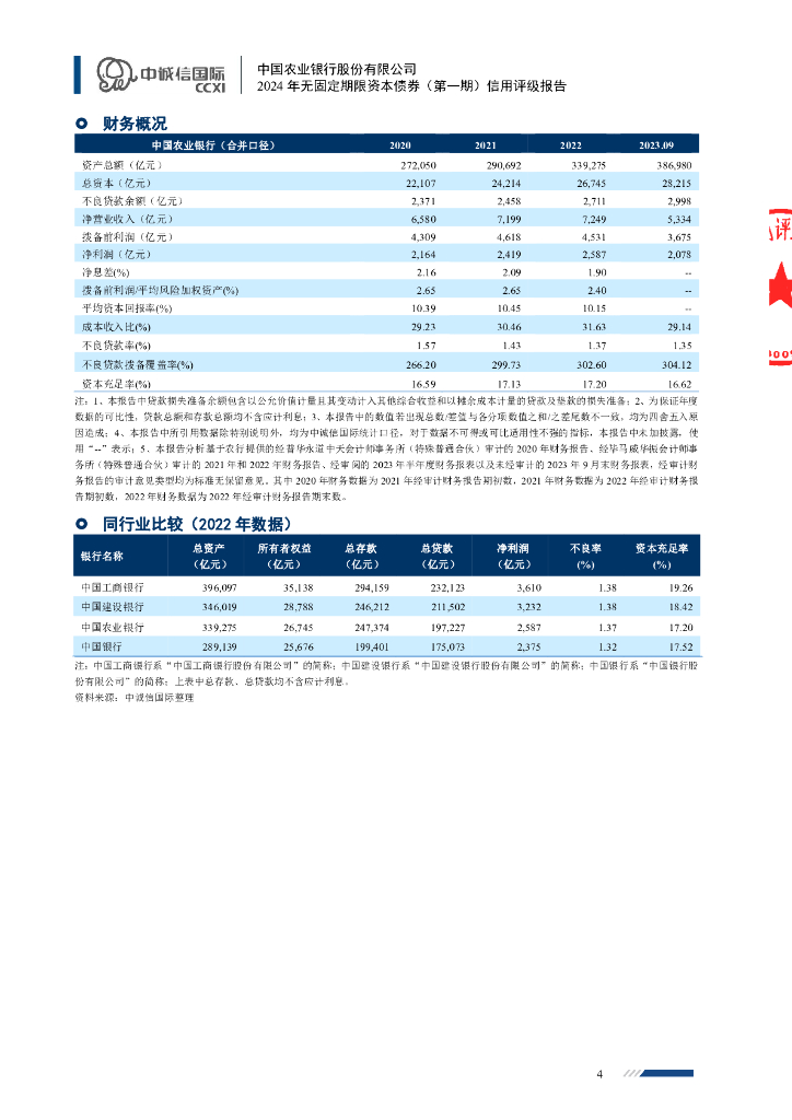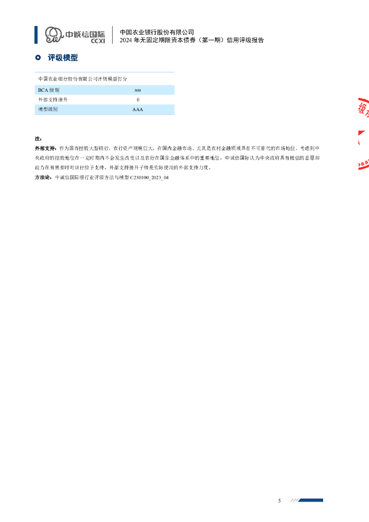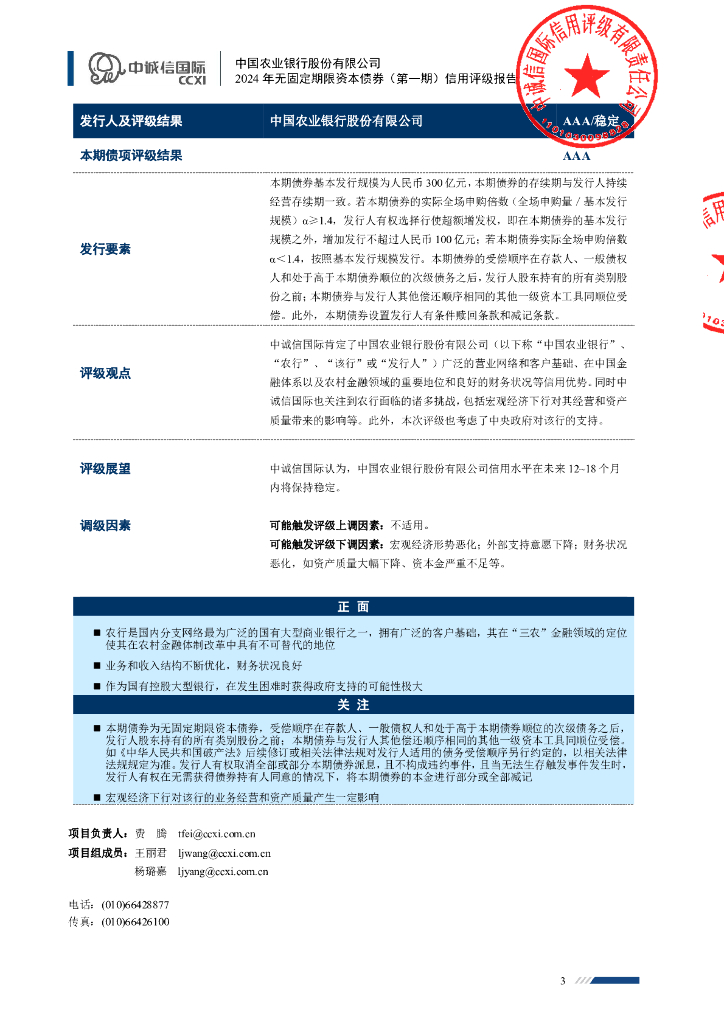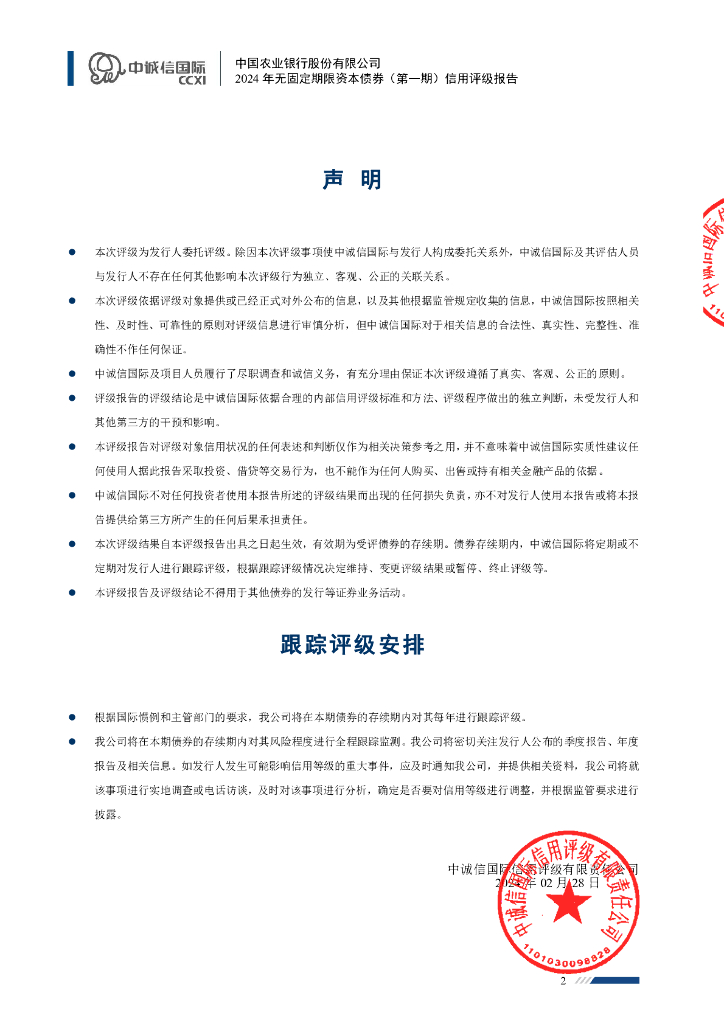 中诚信:中国农业银行股份有限公司2024年无固定期限资本债券(第一期)信用评级报告及跟踪评级安排.pdf