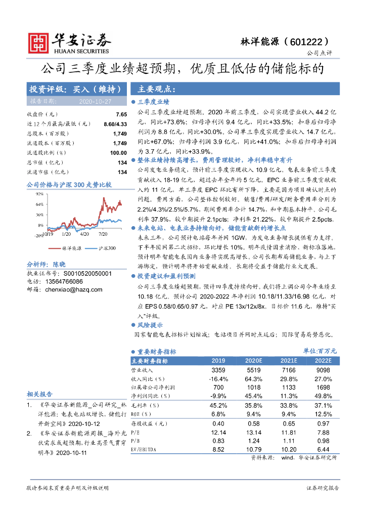 华安证券:林洋能源(601222)-公司三季度业绩超预期,优质且低估的储能标的.pdf