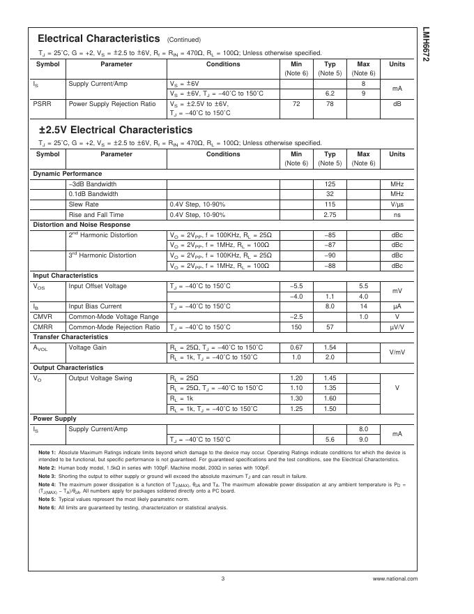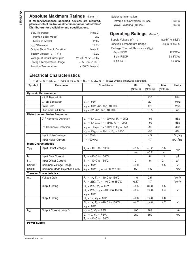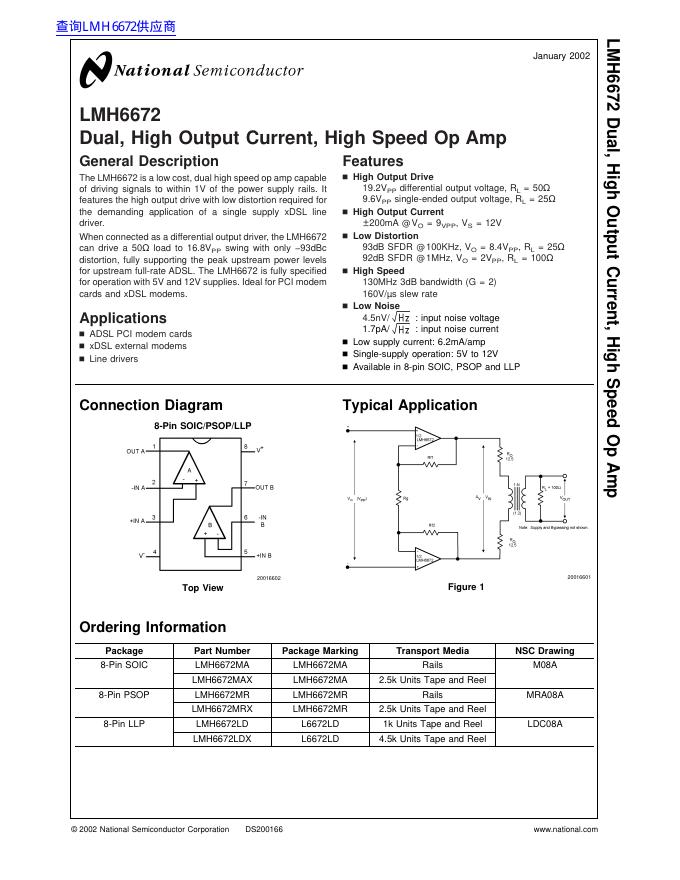 National Semiconductor LMH6672 Dual, High Output Current, High Speed Op Amp 数据手册.pdf
