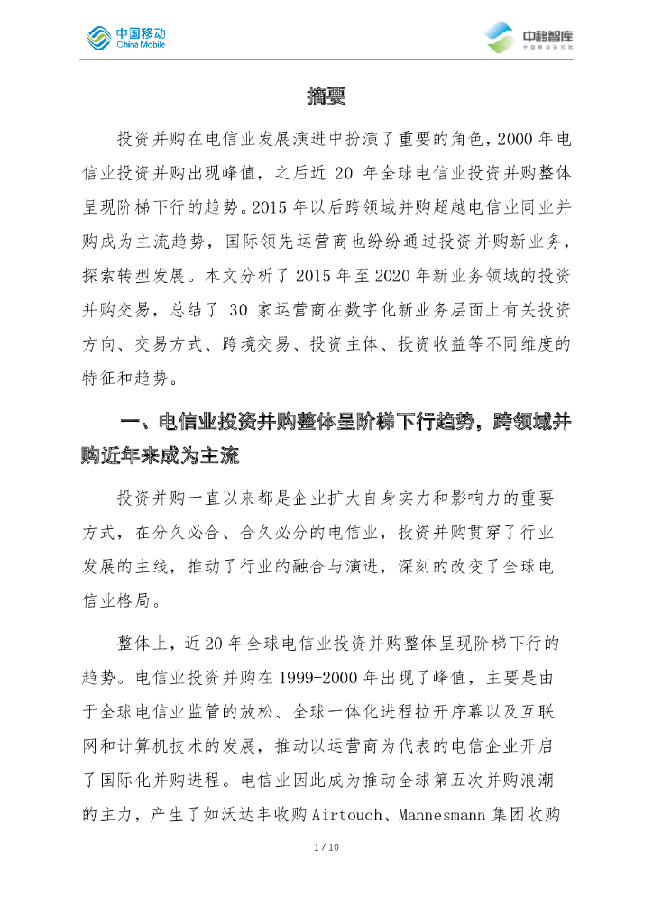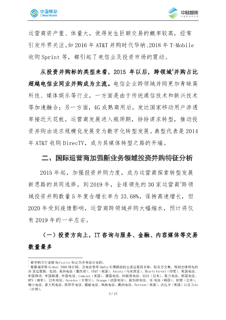 中国移动研究院:国际运营商新业务领域投资并购趋势分析.pdf