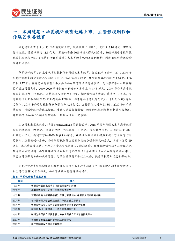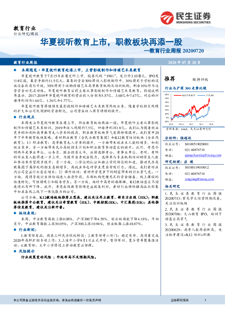 民生证券:教育行业周报:华夏视听教育上市,职教板块再添一股.pdf