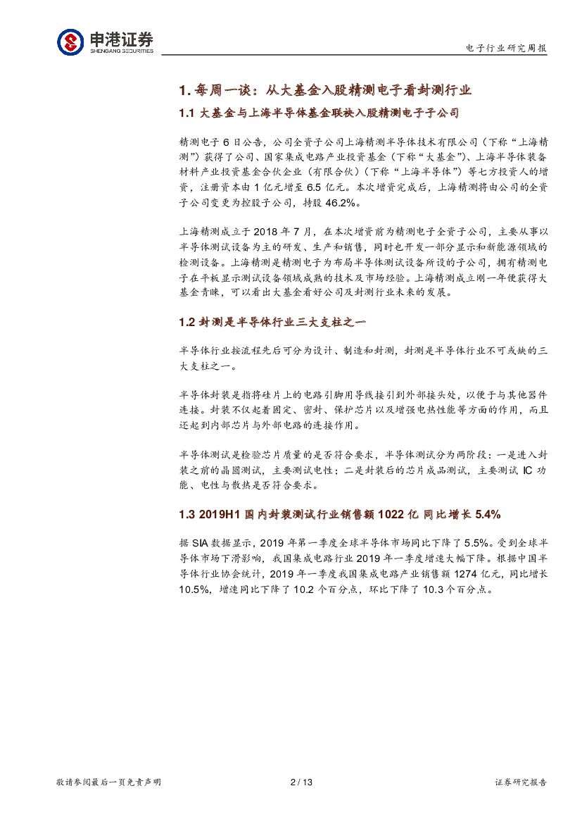 申港证券:电子行业周报:从大基金入股精测电子看封测行业.pdf