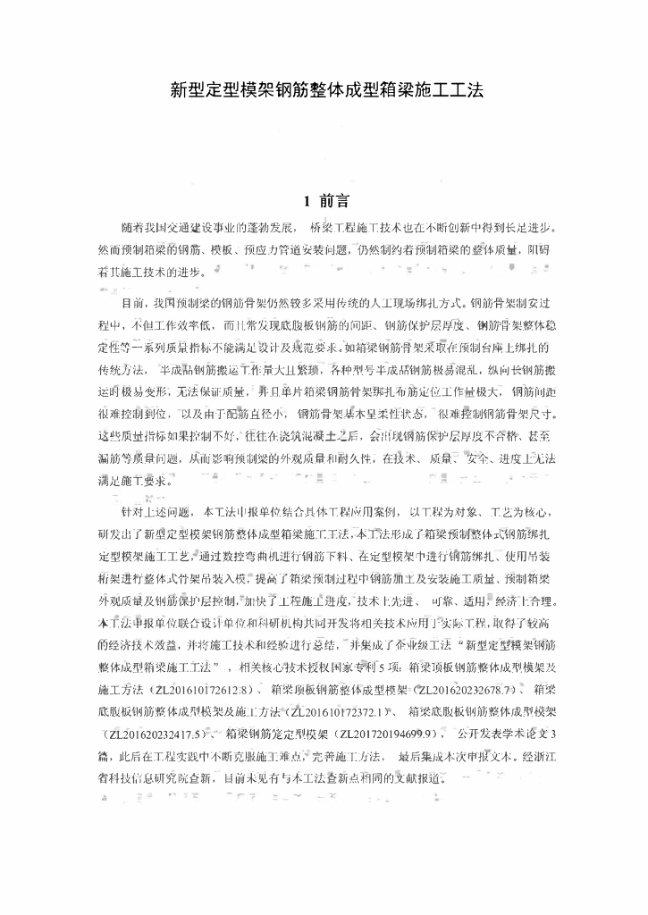 新型定型模架钢筋整体成型箱梁施工工法22页.pdf