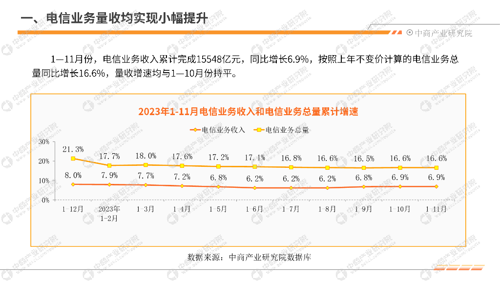 中商产业研究院:2023年1-11月中国通信行业运行情况月度报告.pdf