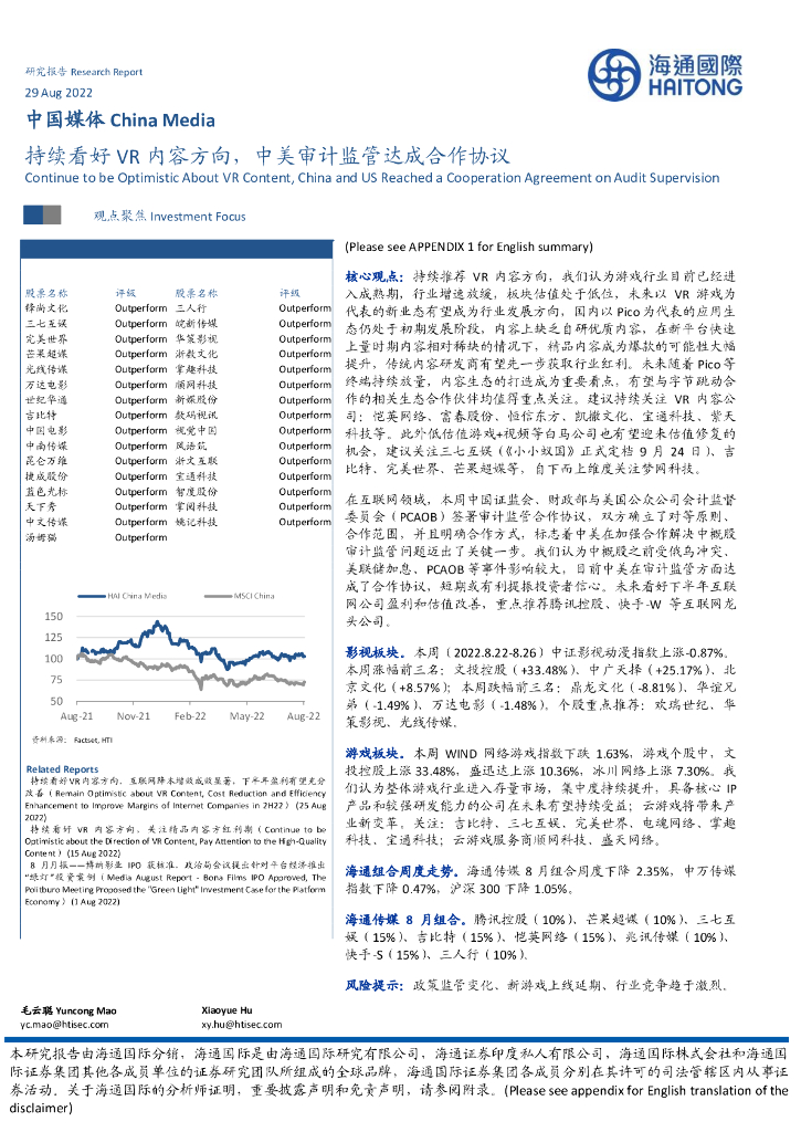 海通国际:中国媒体:持续看好VR内容方向,中美审计监管达成合作协议.pdf