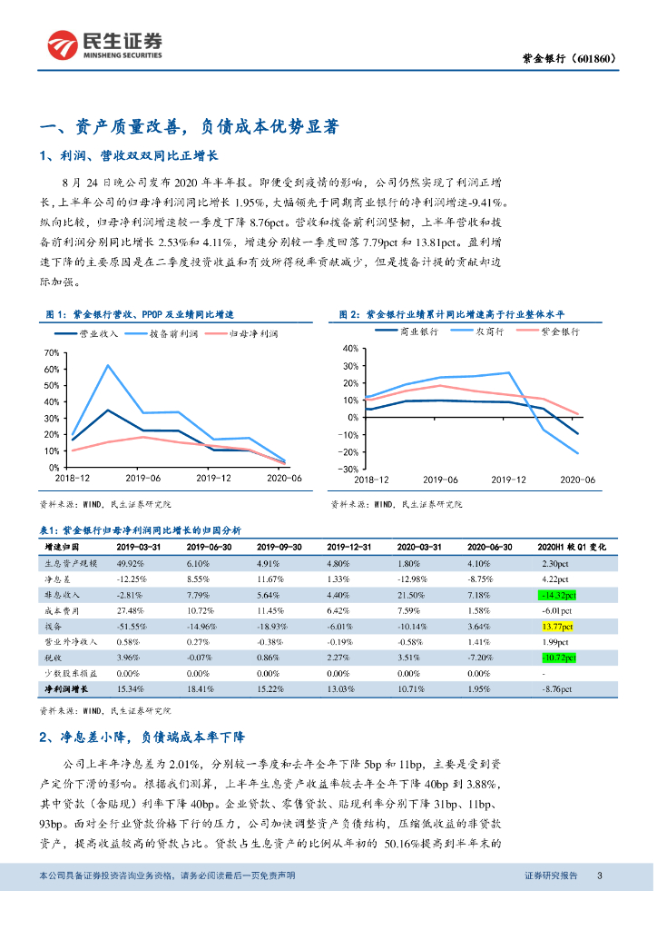 民生证券:详细解读紫金银行2020年半年报:资产质量改善,负债成本优势显著.pdf