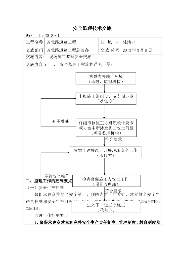 公路现场施工监理安全交底(含流程图).doc