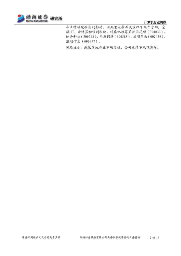 渤海证券:计算机行业周报:市场持续上涨,关注确定性标的.pdf