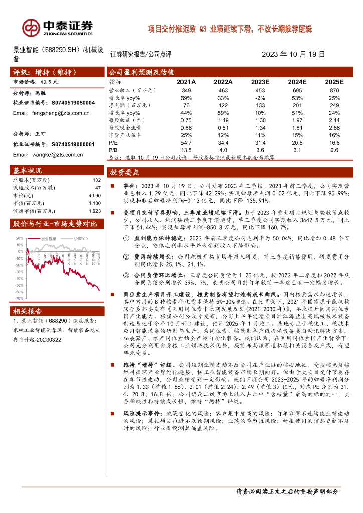 中泰证券:景业智能(688290)-项目交付推迟致Q3业绩延续下滑,不改长期推荐逻辑.pdf