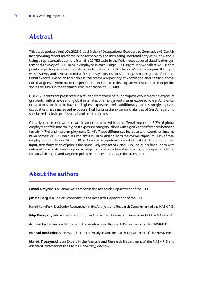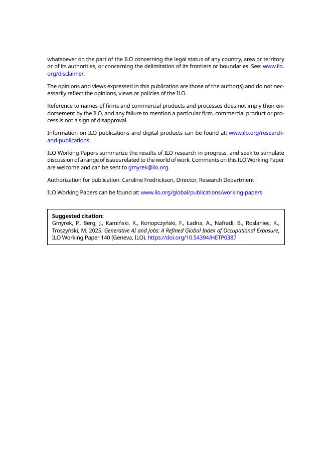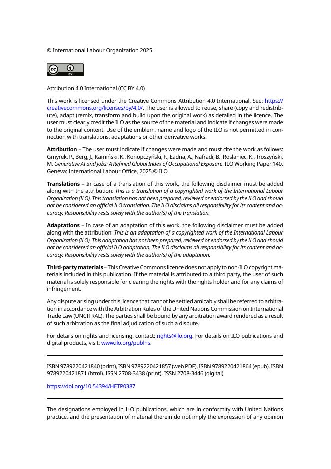 国际劳工组织(ILO):生成式人工智能与工作:职业暴露的改进全球指数(英文版).pdf
