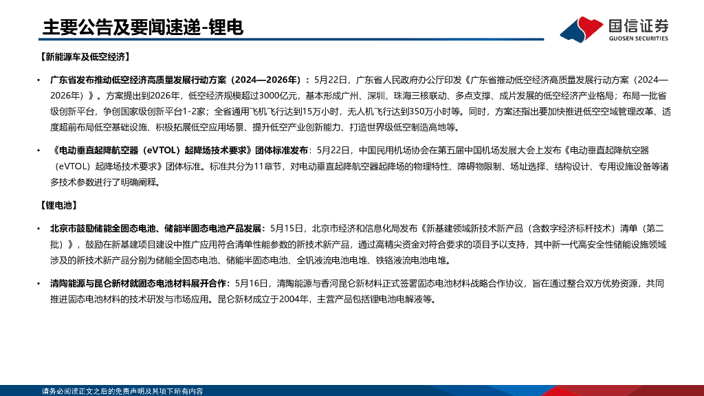 国信证券:锂电产业链周评(5月第4周):锂电材料企业加速美国产能建设,宁德时代成功试飞4吨级电动飞机.pdf