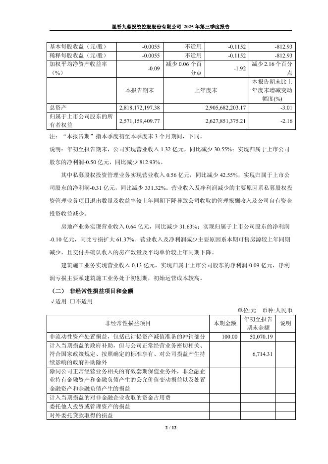 600053-九鼎投资:九鼎投资2025年第三季度报告.pdf