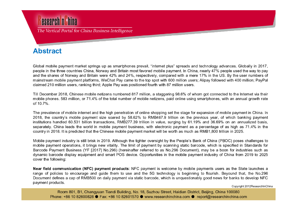 ResearchInChina:2019年-2025年中国及全球移动支付行业报告(摘要版)(英文版).pdf