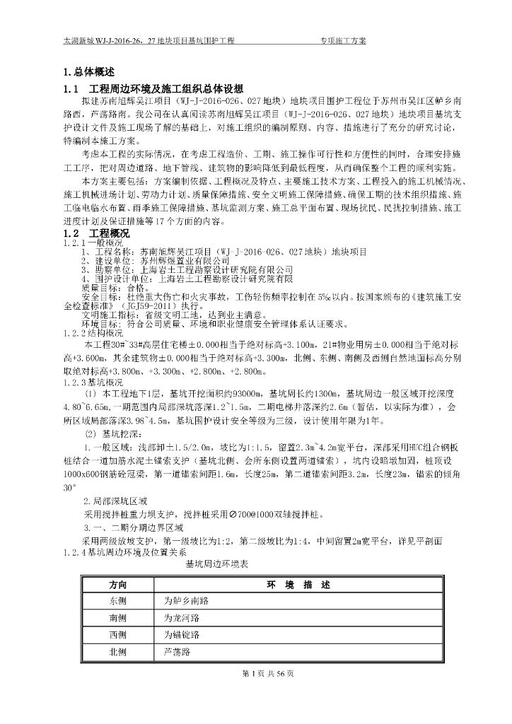 [江苏]HUC组合钢板桩及预应力加劲锚杆深基坑支护施工方案(附方案图).doc
