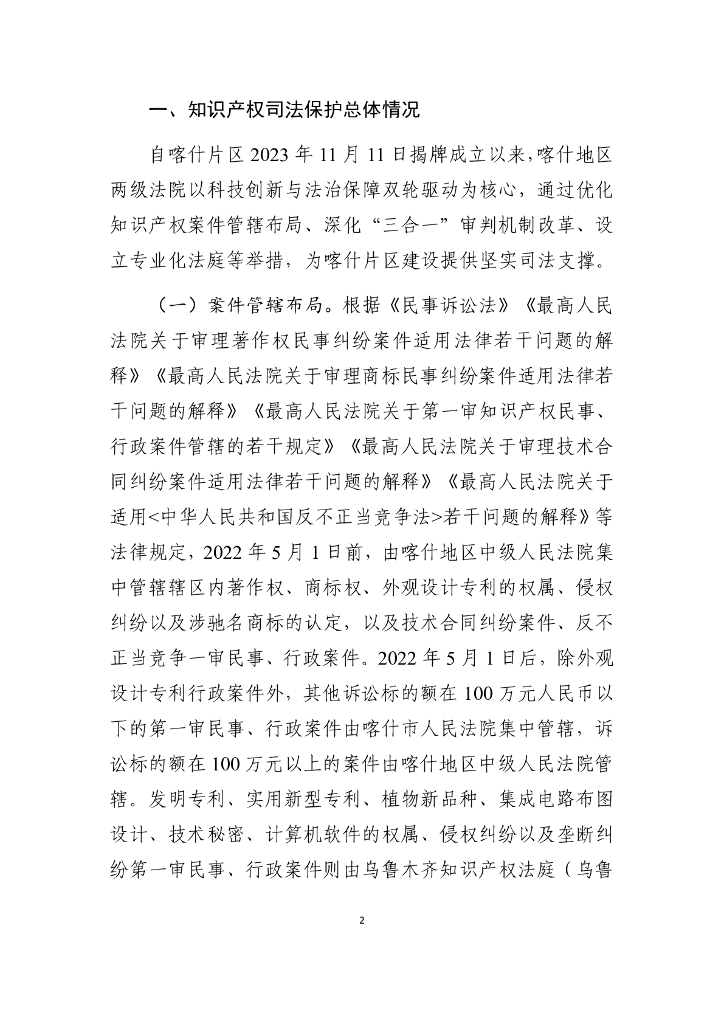 喀什地区两级法院知识产权司法服务保障中国(新疆)自由贸易试验区喀什片区高质量发展白皮书.pdf