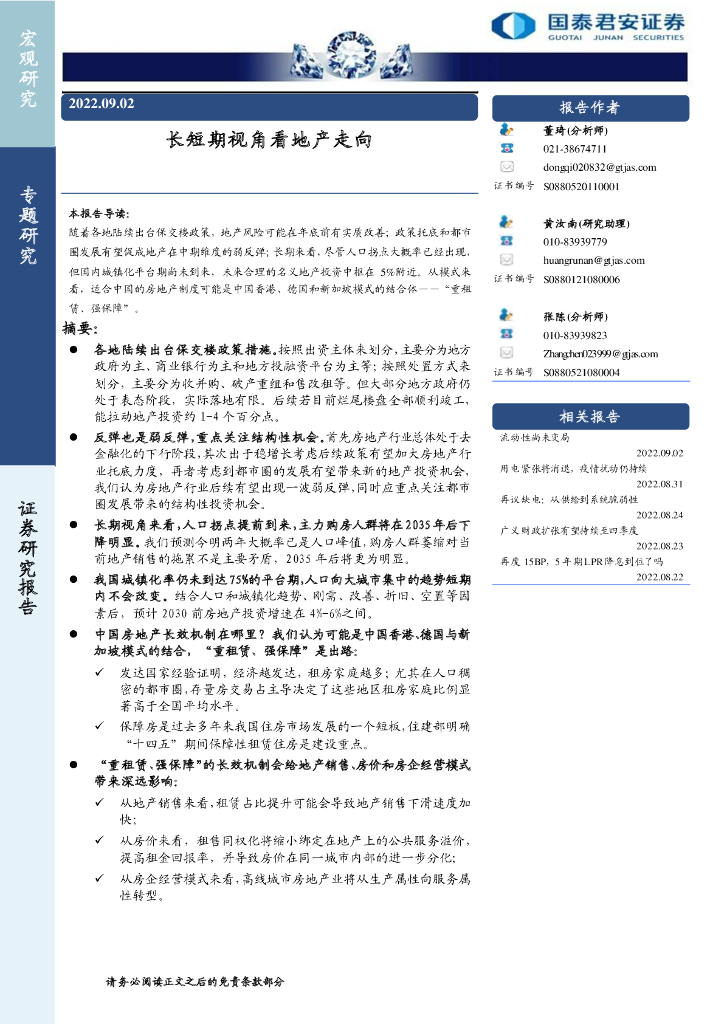 国泰君安:长短期视角看地产走向.pdf