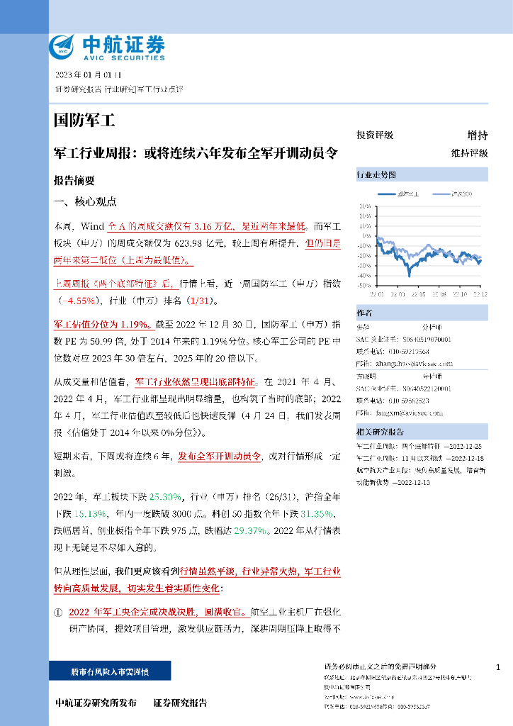 中航证券:军工行业周报:或将连续六年发布全军开训动员令.pdf