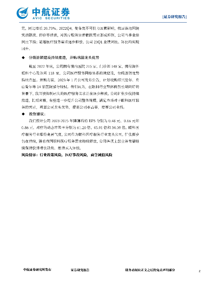 中航证券:爱尔眼科(300015)-2022年年报和2023一季报点评:需求释放驱动一季度业绩快速增长,长期看好眼科医疗服务赛道.pdf