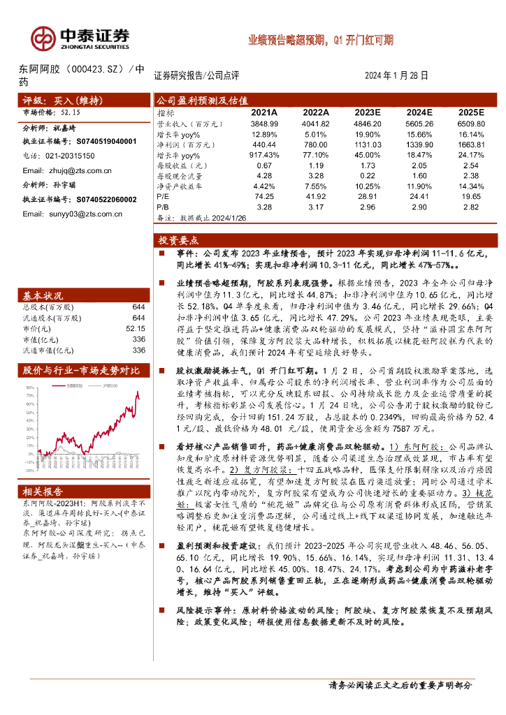 中泰证券:东阿阿胶(000423)-业绩预告略超预期,Q1开门红可期.pdf