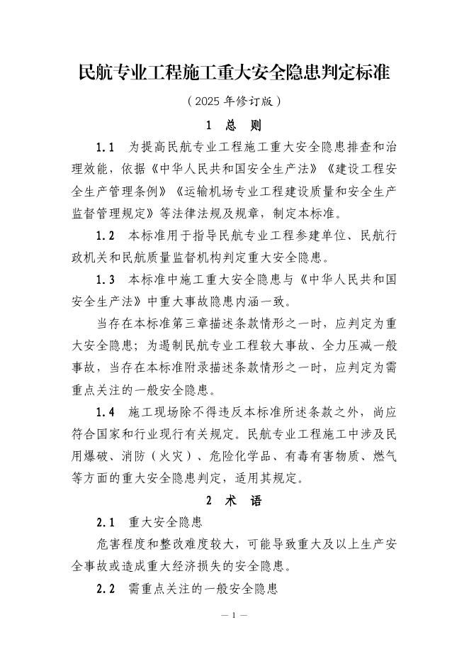 中国民用航空局机场司:民航专业工程施工重大安全隐患判定标准(2025年修订版).pdf