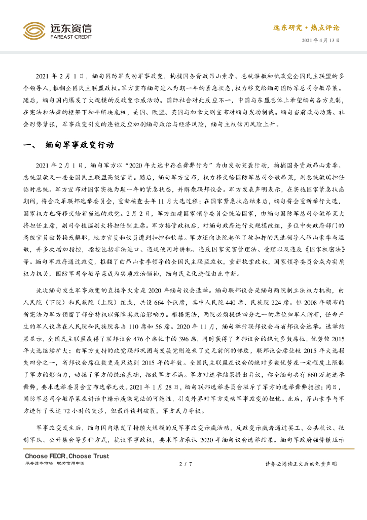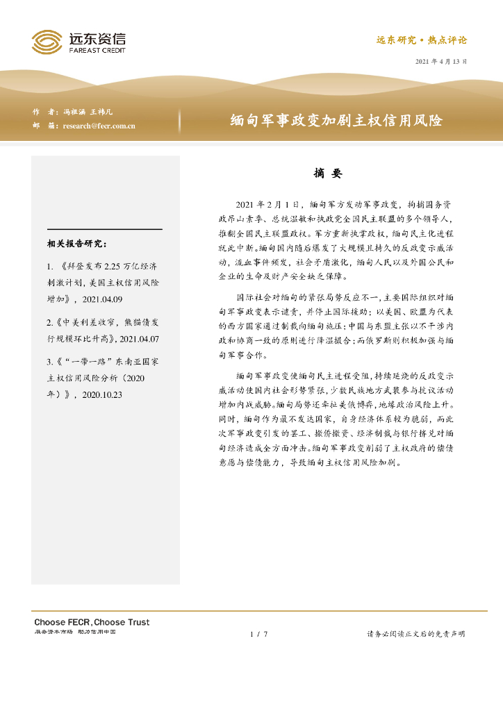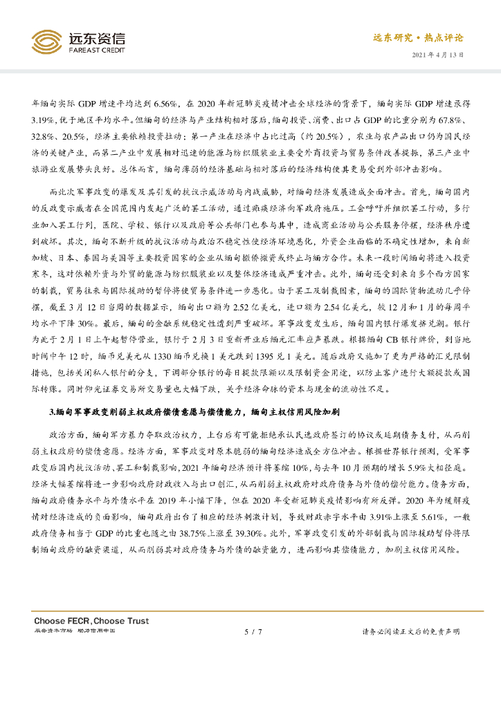 远东资信:缅甸军事政变加剧主权信用风险报告.pdf