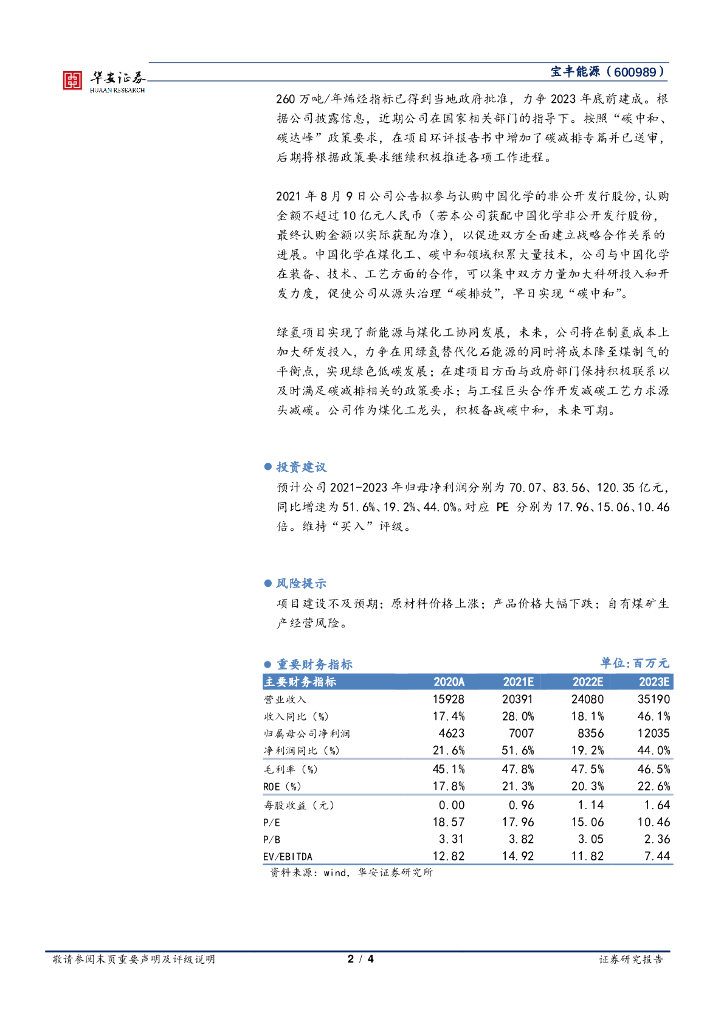 华安证券:宝丰能源(600989)-煤化工巨头积极备战碳中和,行稳致远.pdf