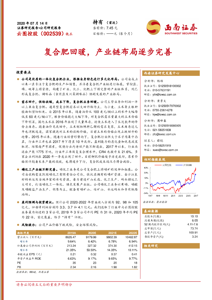 西南证券:云图控股(002539)-复合肥回暖,产业链布局逐步完善.pdf