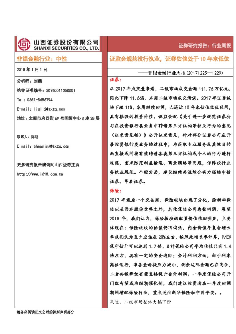 山西证券:非银金融行业周报:证监会规范投行执业,证券估值处于10年来低位.pdf