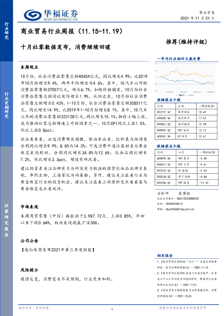 华福证券:商业贸易行业周报:十月社零数据发布,消费继续回暖.pdf