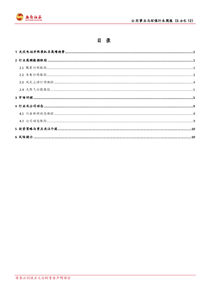 西南证券:公用事业与环保行业周报:光伏电站并网装机高增,煤价小幅探涨.pdf