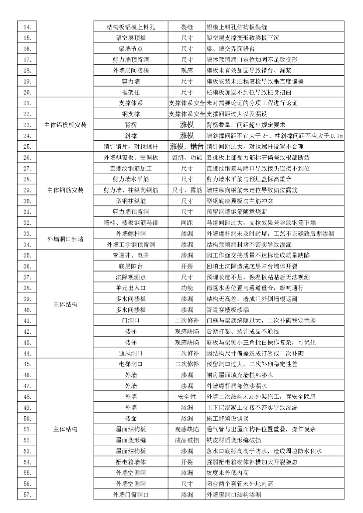 知名集团项目质量问题管控清单.doc