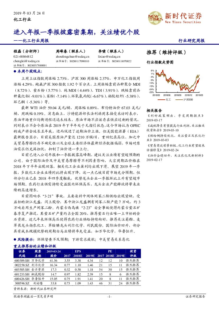 新时代证券:化工行业周报:进入年报一季报披露密集期,关注绩优个股.pdf