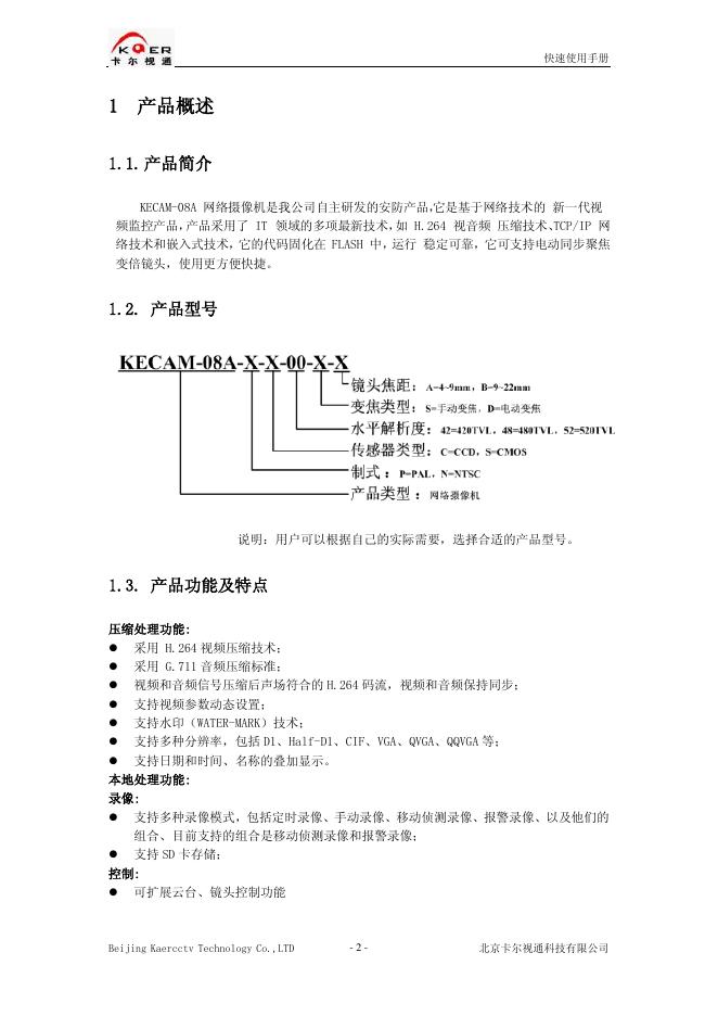 北京卡尔视通科技有限公司 KECAM-08A 网络摄像机 快速使用手册.pdf
