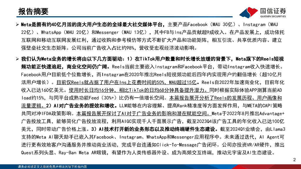 国信证券:脸书深度系列一:Reels商业化空间广阔,AI版图逐渐清晰.pdf