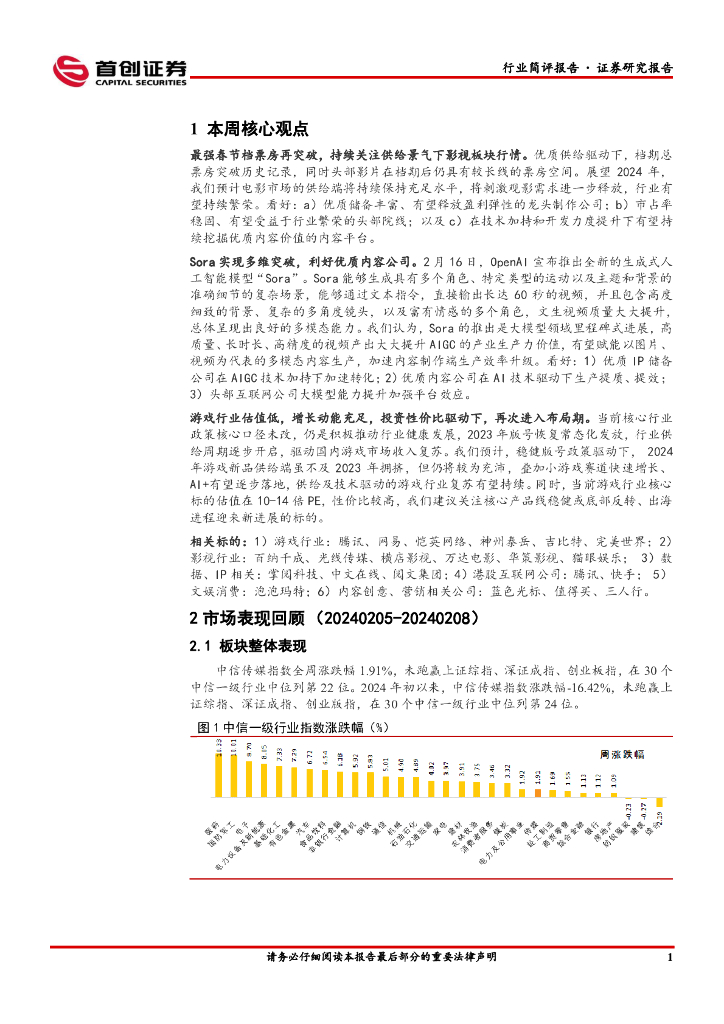 首创证券:传媒行业简评报告:最强春节档兑现预期,Sora利好优质内容公司.pdf
