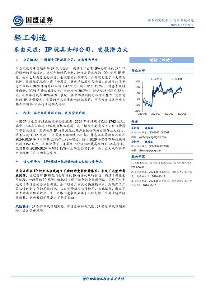 国盛证券:乐自天成:IP玩具头部公司,发展潜力大.pdf