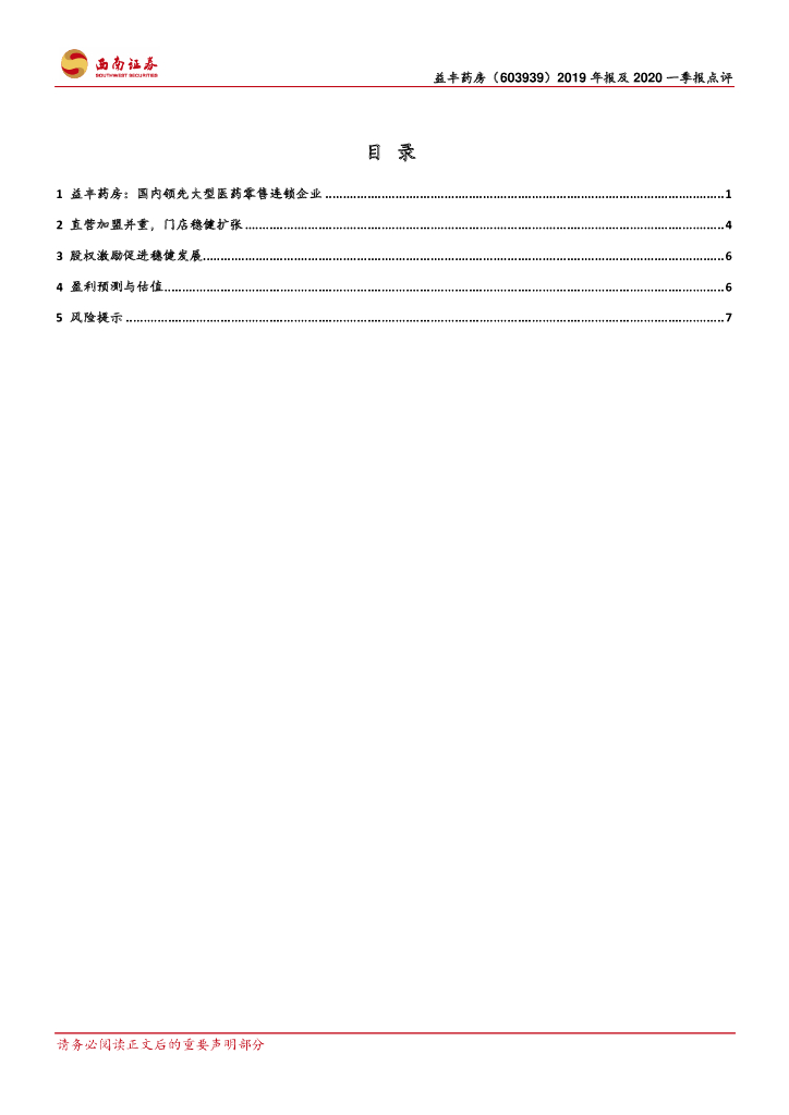 西南证券:益丰药房(603939)-业绩保持较快增长,股权激励促进稳健发展.pdf