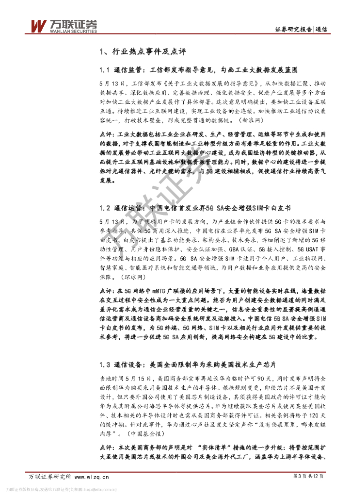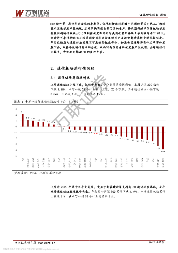 万联证券:通信行业周观点:华为再遭限制,5G建设强劲势头不改.pdf