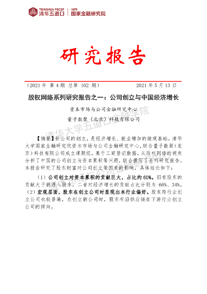 清华五道口:股权网络系列研究报告之一:公司创立与中国经济增长.pdf