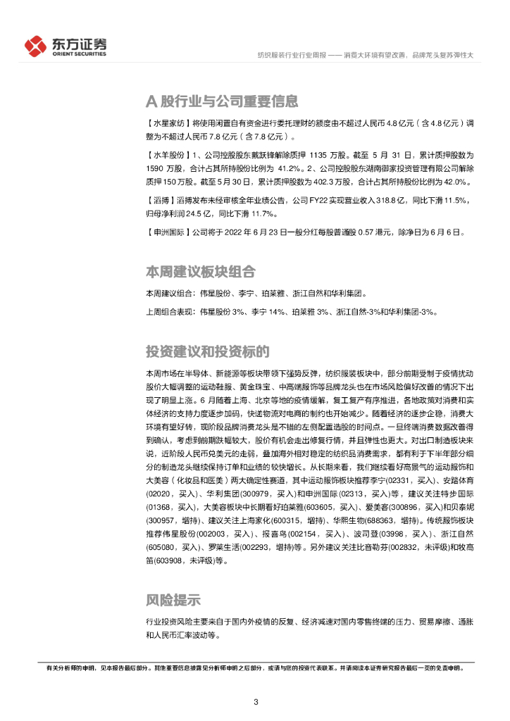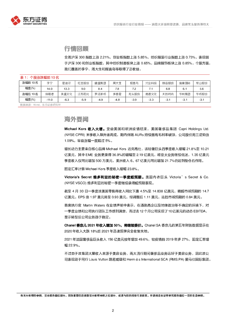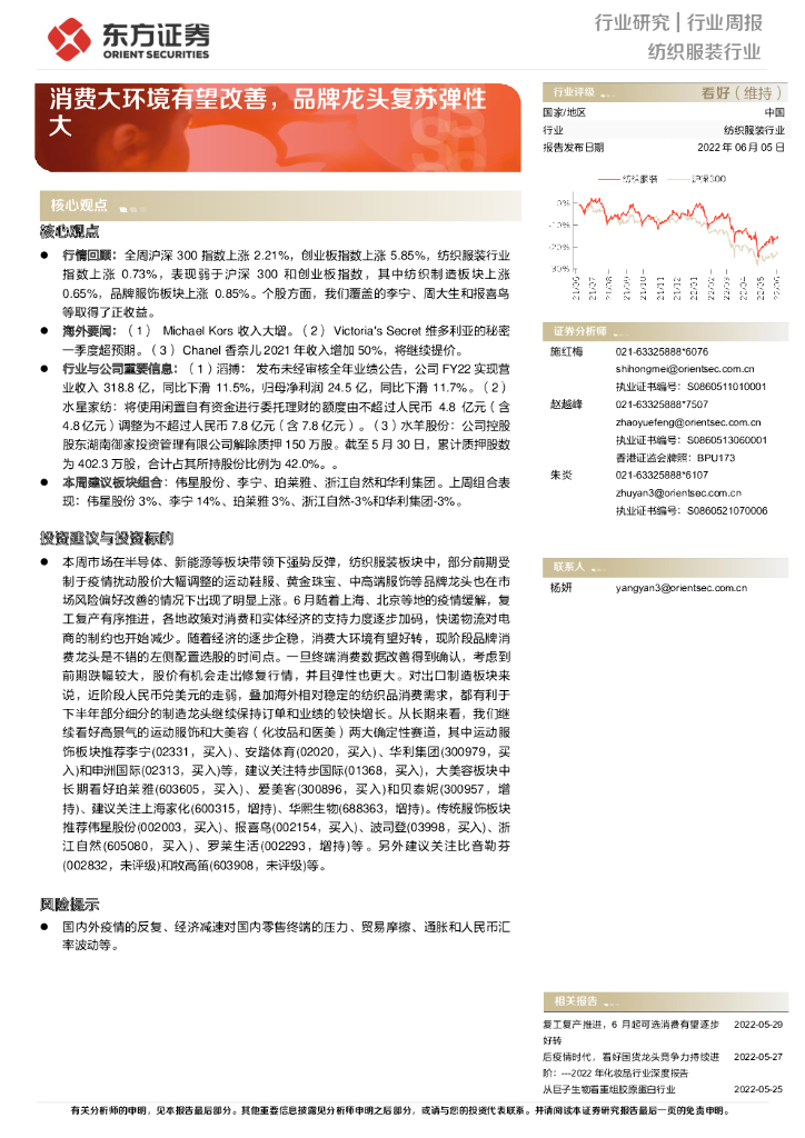 东方证券:纺织服装行业周报:消费大环境有望改善,品牌龙头复苏弹性大.pdf