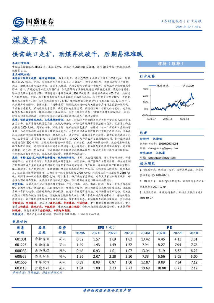 国盛证券:煤炭开采行业:供需缺口走扩,动煤再次破千,后期易涨难跌.pdf